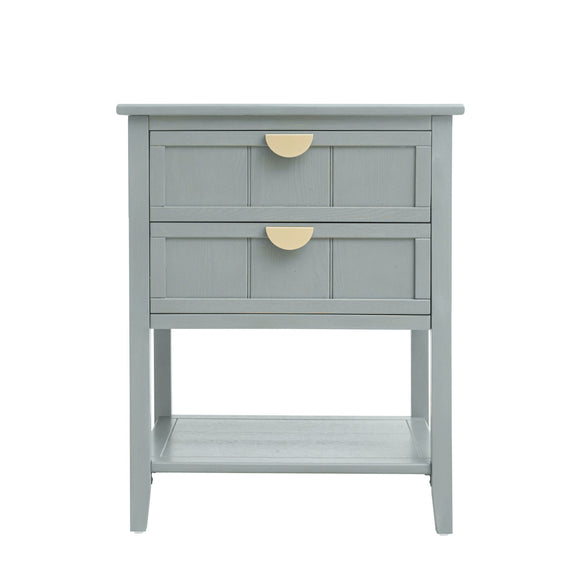 2 Drawer Side Table, American Style, End Table, Suitable For Bedroom, Living Room, Study - Light Gray
