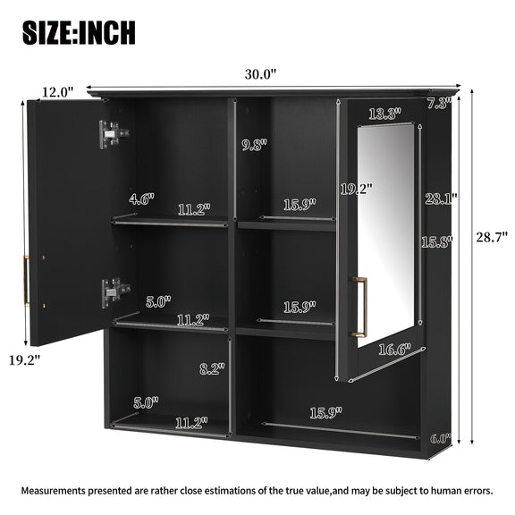 2 In 1 Wall-Mounted Mirror Cabinet With Adjustable Shelves, Soft-Close Doors, High-Definition Mirror & Storage - Black