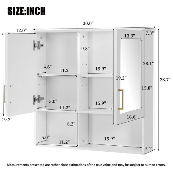 2 In 1 Wall-Mounted Mirror Cabinet With Adjustable Shelves, Soft-Close Doors, High-Definition Mirror & Storage - White