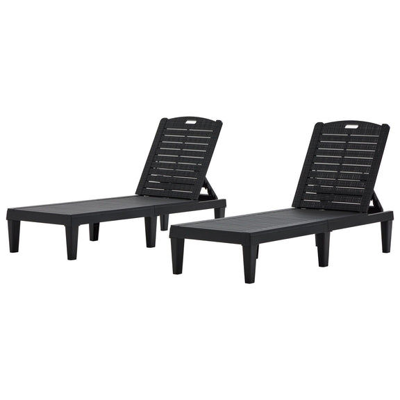 Outdoor Chaise Lounges (Set of 2) With Adjustable Backrest Polypropylene Resin For Patio, Poolside Or Beach - Black