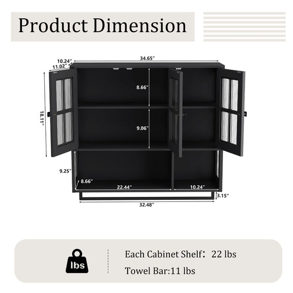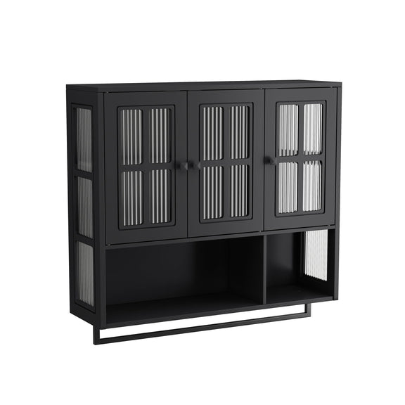 3 Door Wall Cabinet With Glass Door And Towel Bar - Black