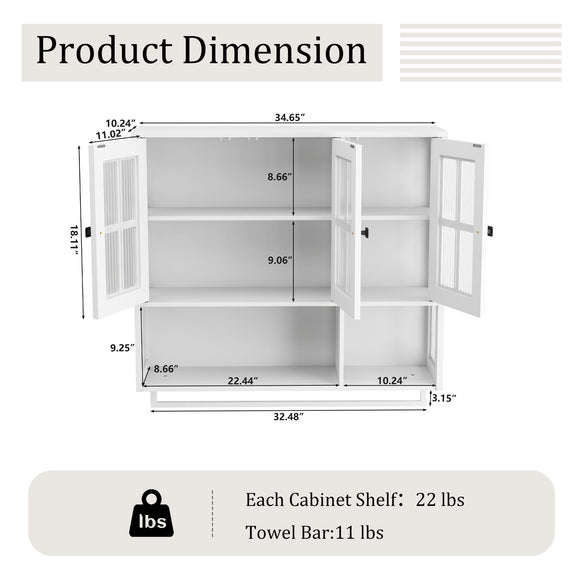 3 Door Wall Cabinet With Glass Door And Towel Bar - White