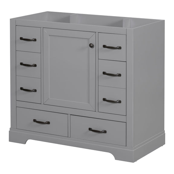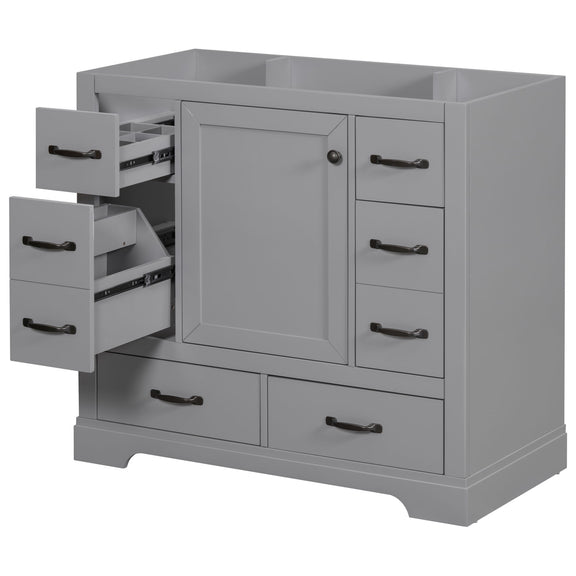 36" Bathroom Vanity Without Sink, Cabinet Base Only, 6 Drawers, Multi Functional Drawer Divider, Adjustable Shelf - Gray