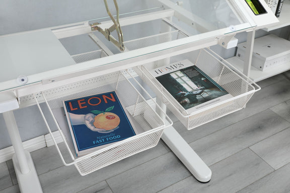 - Tiltable Tempered Glass Desktop: 5mm thick glass top tilts up to 75 for versatility.