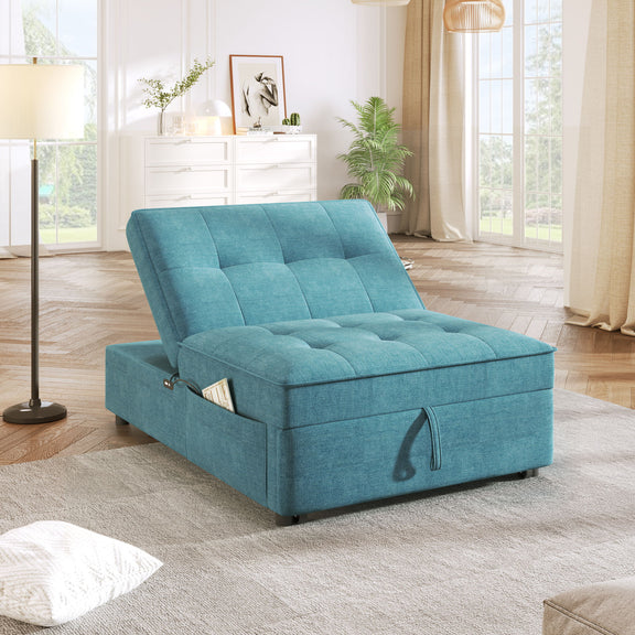 4 In 1 Sofa Bed, Chair Bed, Multi-Function Folding Ottoman Bed With Storage Pocket And USB Port For Small Room Apartment, Living Room, Bedroom, Hallway - Teal