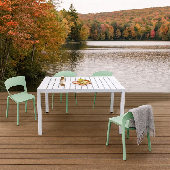 - Durability: Powder-coated metal table legs resist wind, rain and humidity without easy fading. The tabletop and chairs, made of polypropylene, have stain, wear and UV resistance (suitable for over 17,520 hours of outdoor use).