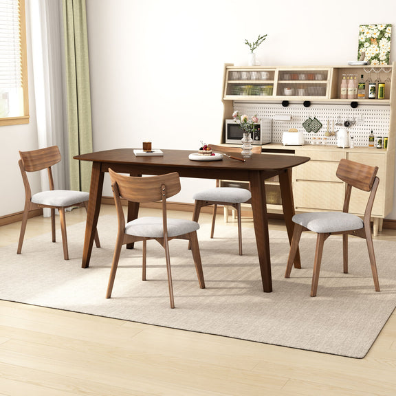 - Complete Set: Includes one dining table and four upholstered side chairs.