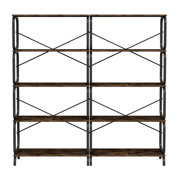 5 Tier Industrial Bookshelf, Tall Bookcase With Open Design, Vintage Storage Organizer
