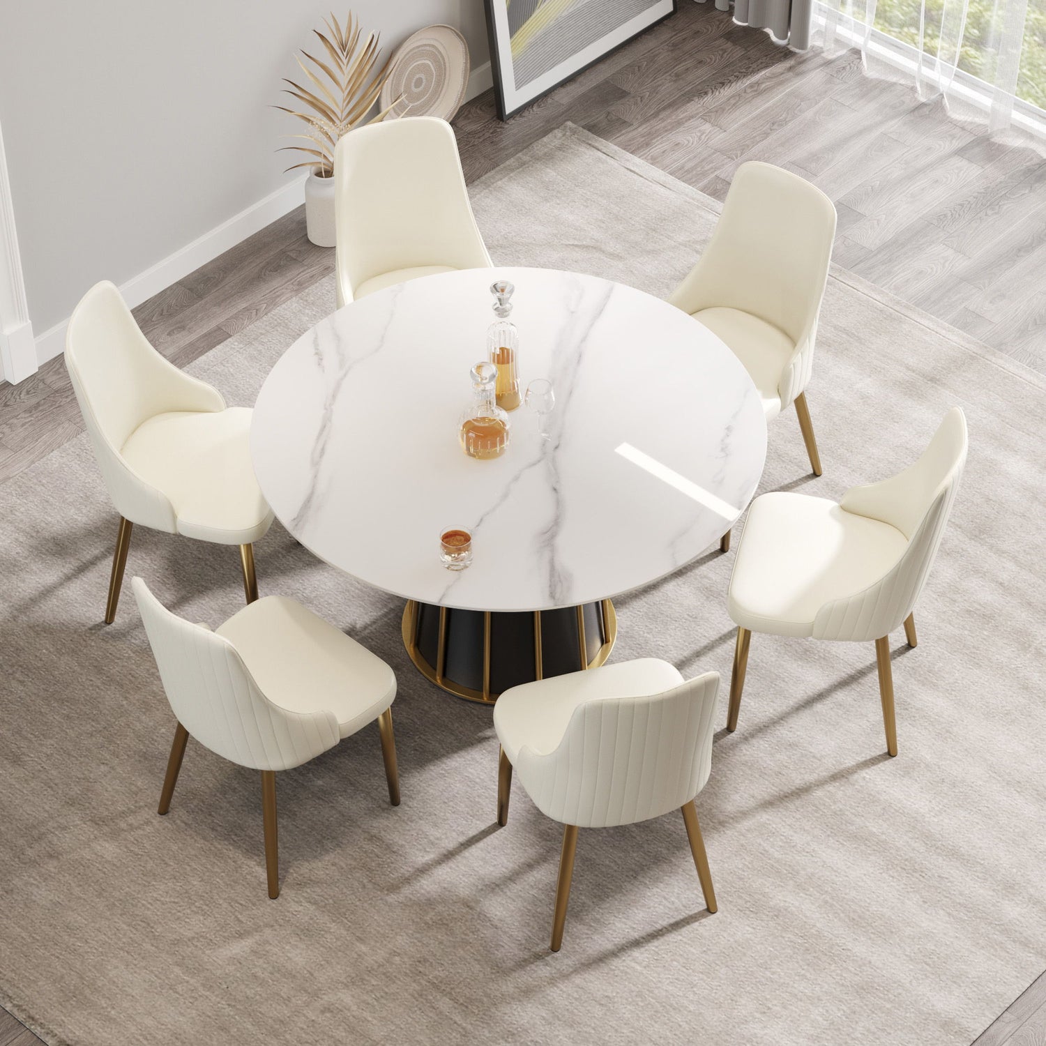 - Elegant Design: The round tabletop made from artificial stone adds a modern touch to any dining room.