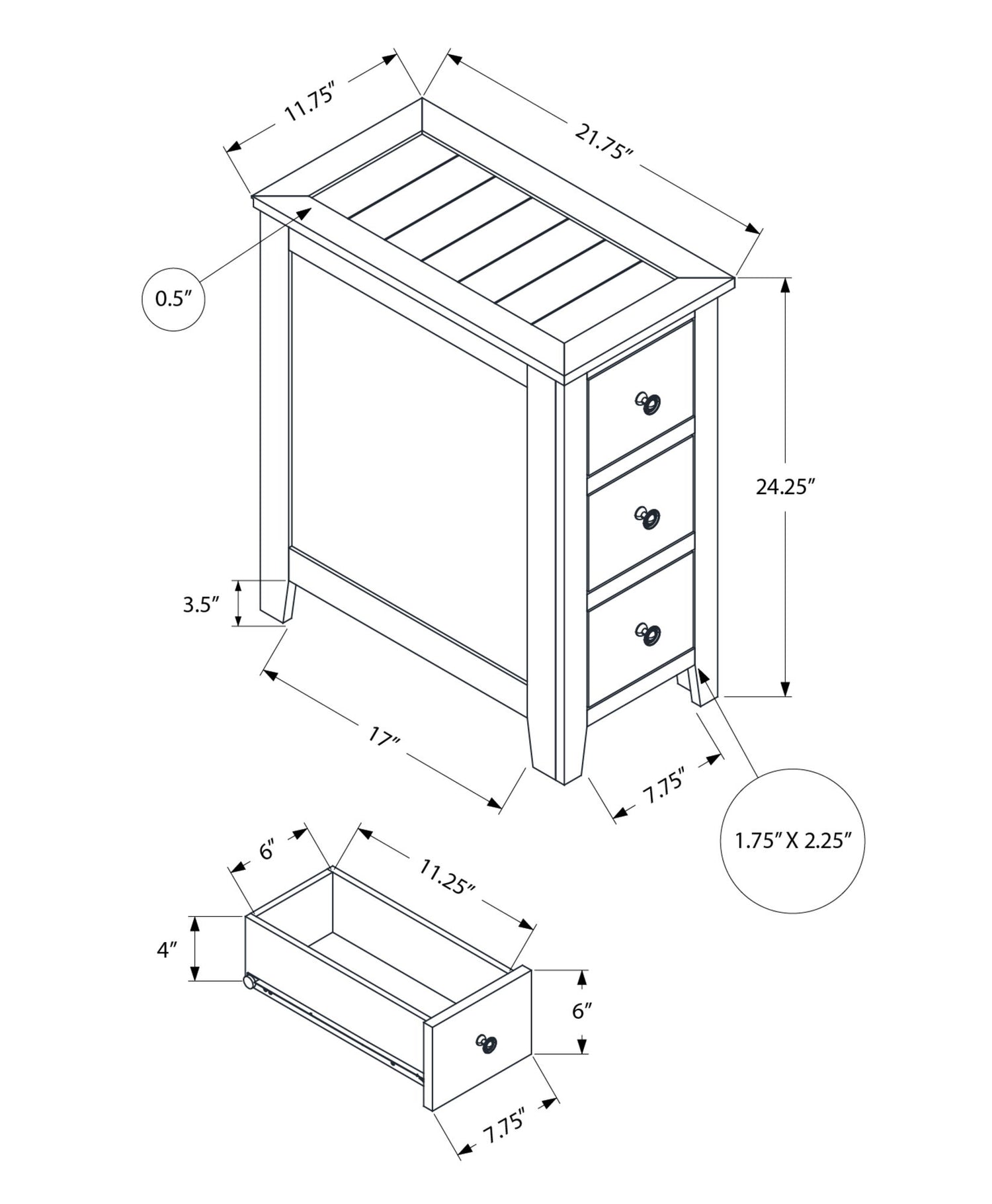 - Compact Dimensions: With dimensions of 11.75 inches wide, 21.75 inches long, and 24.25 inches high, this table is designed to fit comfortably in tight spaces without sacrificing functionality.