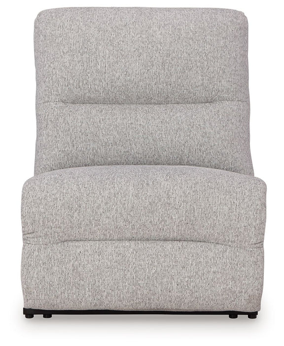 This power armless recliner is made with Next-Gen Nuvella™ (polyester) upholstery. Pairs with other items in the series to make a sectional.