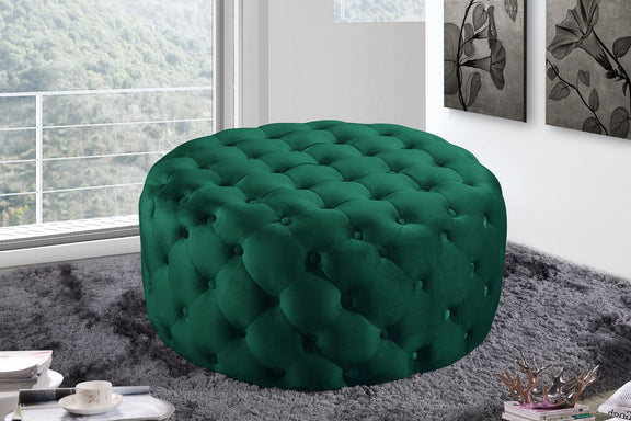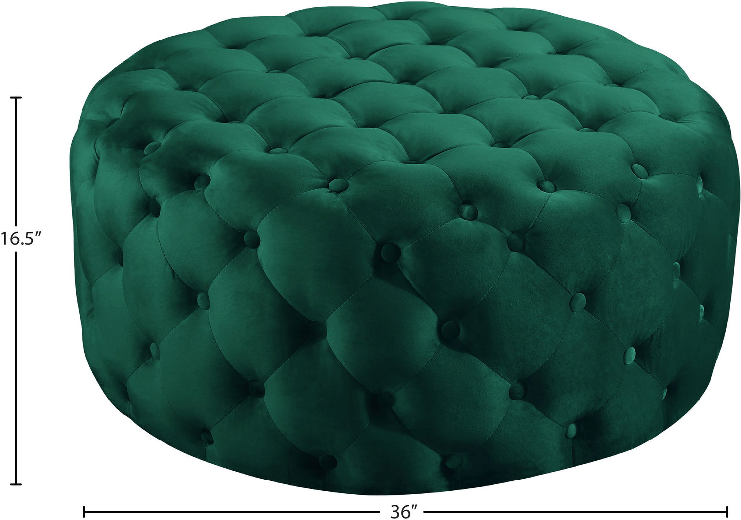 Rest weary legs at day's end atop the welcoming comfort of this Addison velvet ottoman. This Hollywood-inspired ottoman features deep button tufting from top to bottom for a luxe look and is covered in velvety upholstery for added glam. The vibrant color makes a bold statement in your space. This substantially sized ottoman also doubles as an extra seat and is padded thickly for supreme comfort.