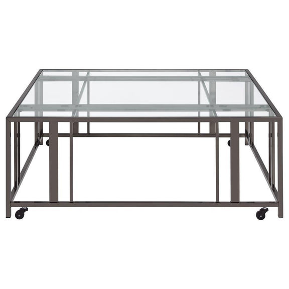 Adri - Square Glass Top Coffee Table With Casters - Black Nickel
