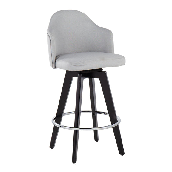 Ahoy - Contemporary Fixed Height Counter Stool Round Chrome Footrest (Set of 2) - Light Gray / Black
