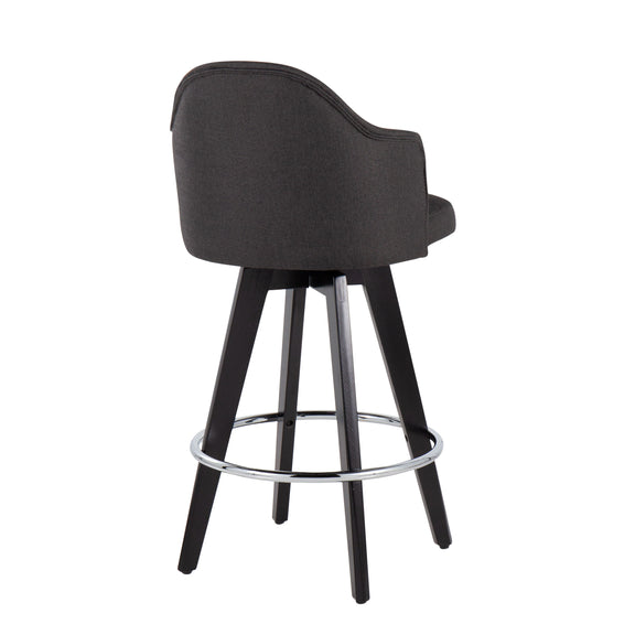 Ahoy - Contemporary Fixed Height Counter Stool Round Chrome Footrest (Set of 2) - Charcoal / Black