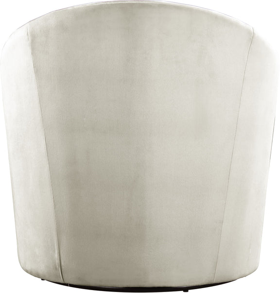 Give your living space a sophisticated makeover with this Alessio Accent Chair from Meridian Furniture. This swivel base accent chair has luxurious velvet upholstery that provides you with a soft, comfortable place to sit while you cozy up with your favorite book or curl up in front of your favorite TV show or movie. Deep button tufting on the inner back adds to its contemporary design, making it the perfect addition to any room in your home.