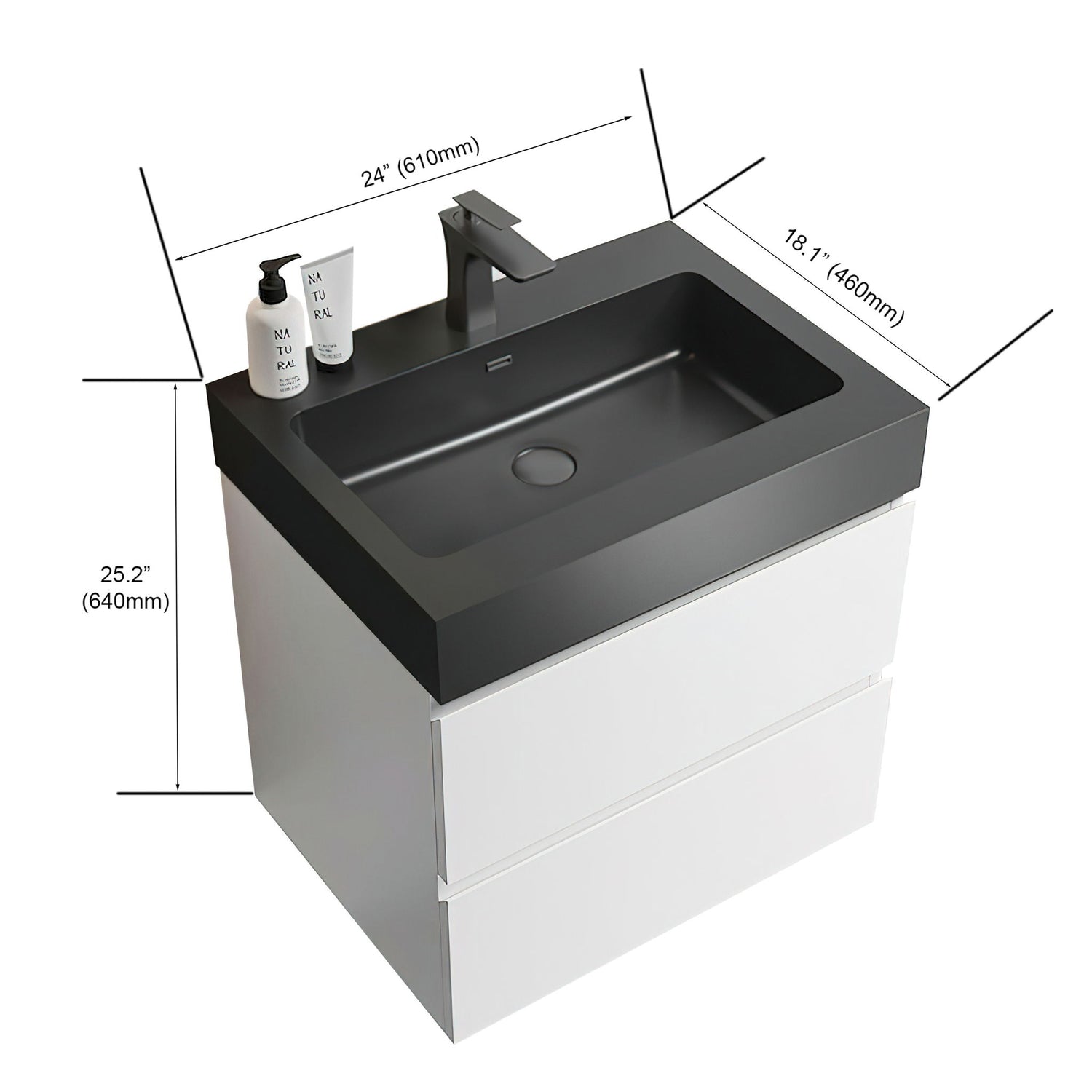 Alice - 24" Bathroom Vanity With Sink, Large Storage Wall Mounted Floating Bathroom Vanity For Modern Bathroom, One-Piece Black Sink Basin Without Drain And Faucet - White / Black
