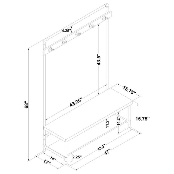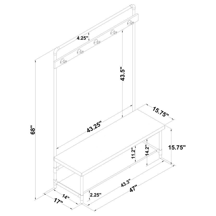 Alise - 5 Hook Coat Rack Hall Tree With Shoe Bench - Chestnut
