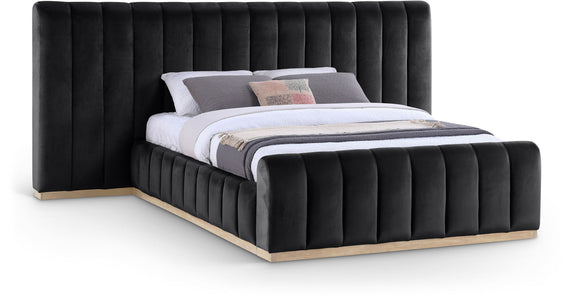 Draped in ultra-luxe 460 GSM velvet, the Amara velvet upholstered king bed exudes elegance and sophistication with its lavish, expansive headboard. Its solid wood inner frame provides lasting durability, complemented by a natural-finish solid wood base for a refined touch. Designed with a sleek contemporary aesthetic, this bed seamlessly blends style and comfort.
