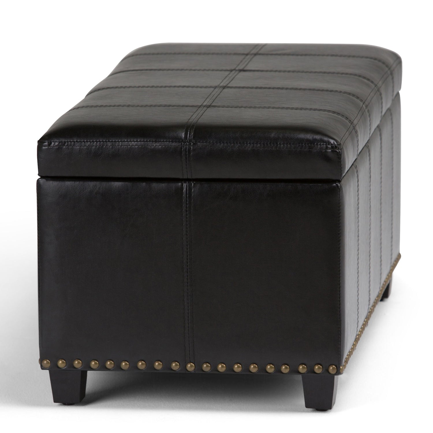 - Transitional design includes stitched detail and nailhead trim at the bottom