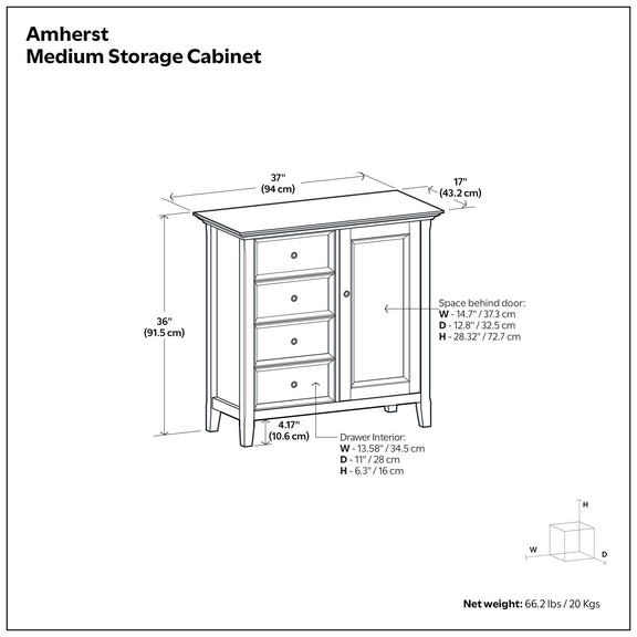 17.0"W x 37.0"D x 36.0"H - 66.1 lb
