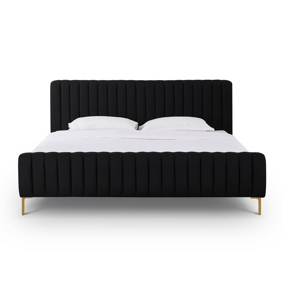 We can't guarantee your dreams will come true, but at least we can help you dream in style. The Angela bed features glam design, channel tufting and legs that pop against the sumptuous velvet upholstery.