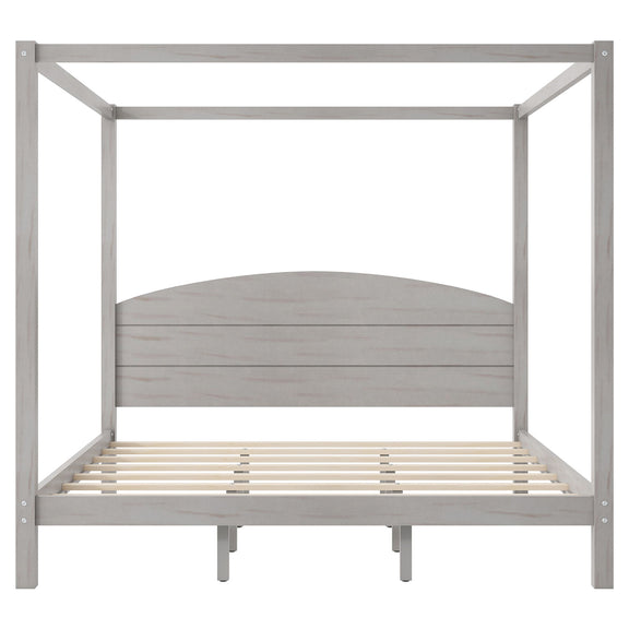 King Size Canopy Platform Bed With Headboard And Support Legs - Gray