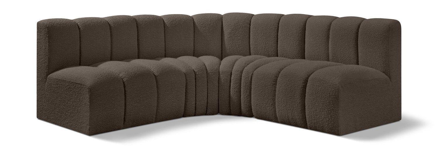 Arc - Boucle Fabric 4 Piece Corner Modular Sofa - Brown