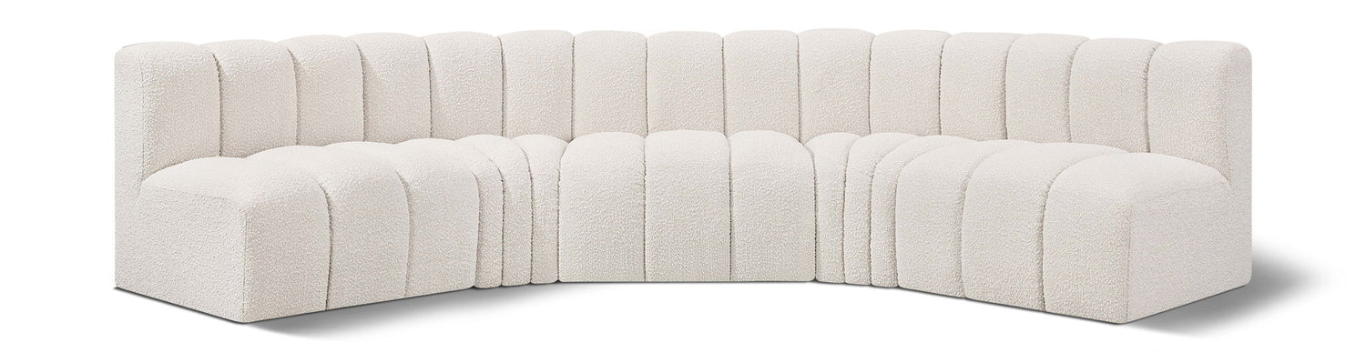 Arc - Boucle Fabric 5 Piece U-Shaped Modular Sofa - Cream