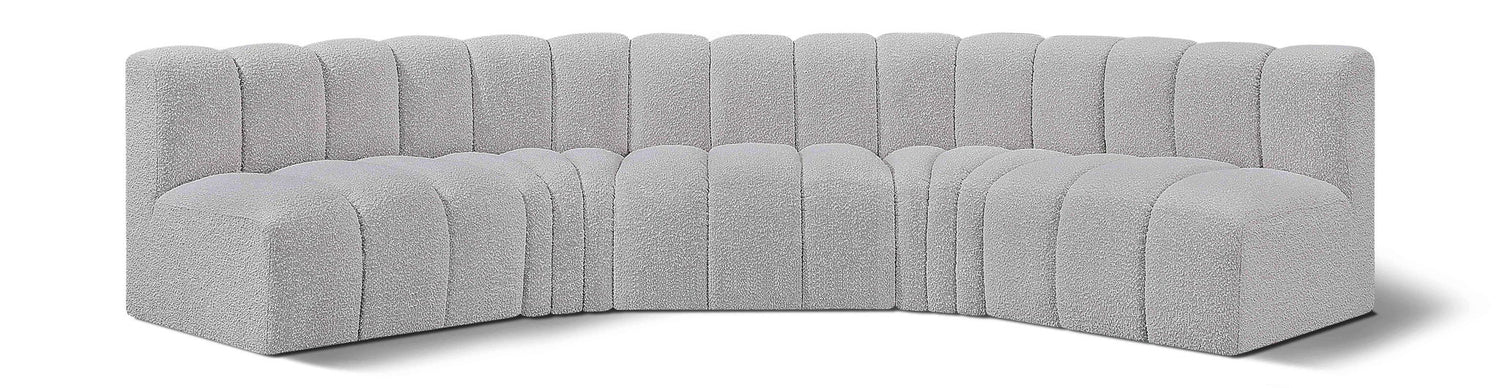 Arc - Boucle Fabric 5 Piece U-Shaped Modular Sofa - Gray