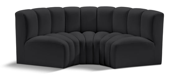 Arc - Faux Leather 3 Piece Modular U-Shaped Sofa - Black