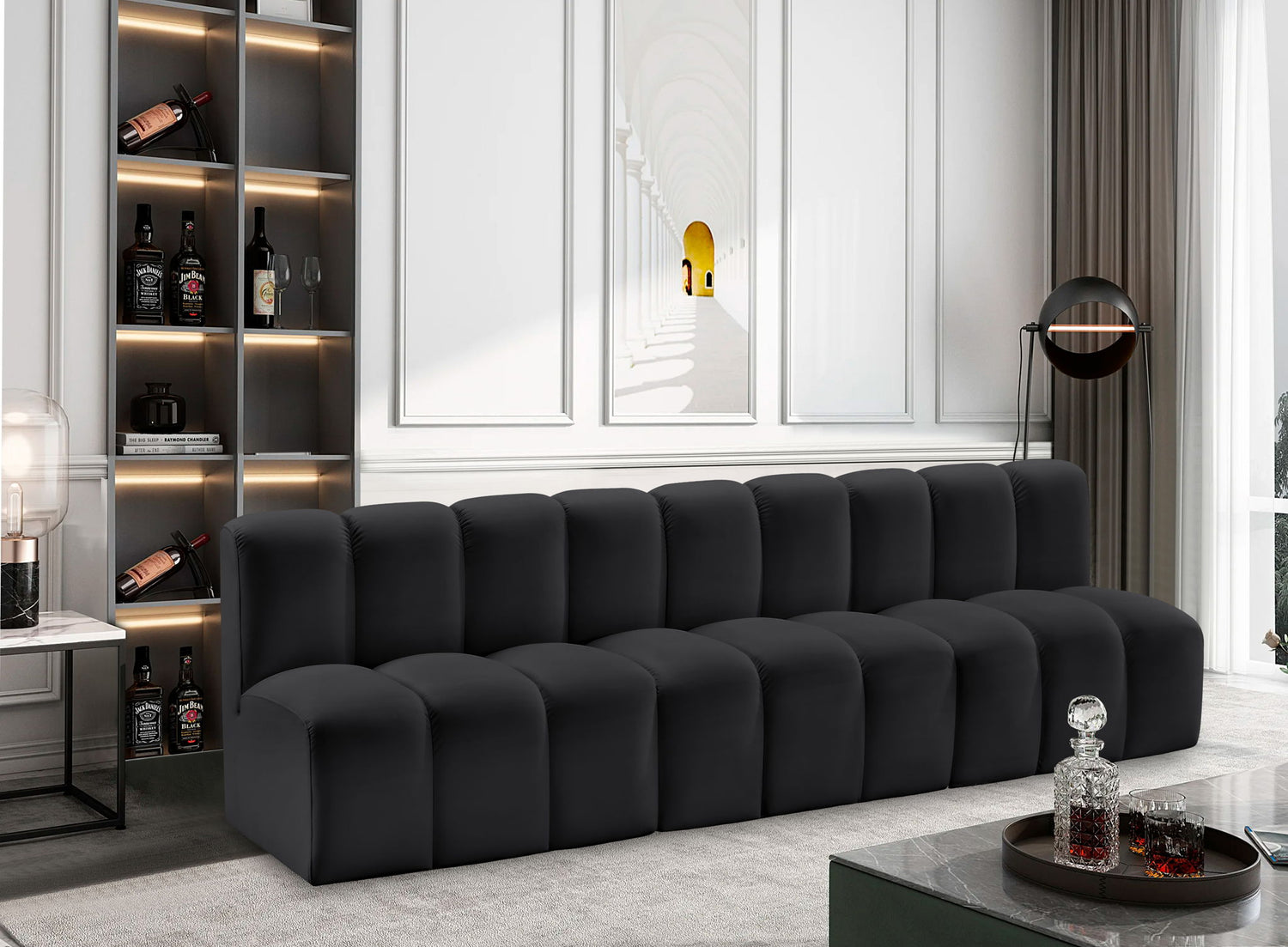 Arc - Faux Leather 3 Pieces Modular Sofa - Black