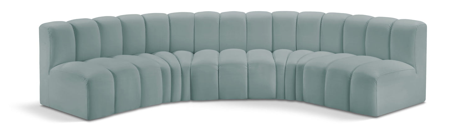 Arc - Faux Leather 5 Piece U-Shaped Modular Sofa - Mint Green