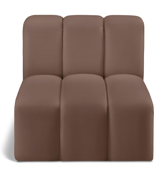 Unleash modern opulence with the Arc Vegan Leather Straight Chair. Crafted for the modern connoisseur, this chair injects an air of refined luxury into any space. Its sleek silhouette, upholstered in supple vegan leather, exudes timeless sophistication while the deep channel tufting adds textural intrigue, further elevating the chair's visual appeal. The modular design makes it a versatile chameleon, effortlessly adapting to your evolving needs and preferences. Whether you envision it gracing a chic living room corner, basking in the glow of a bedroom window, or adding a touch of drama to a home office, the Arc seamlessly complements your unique interior aesthetic.