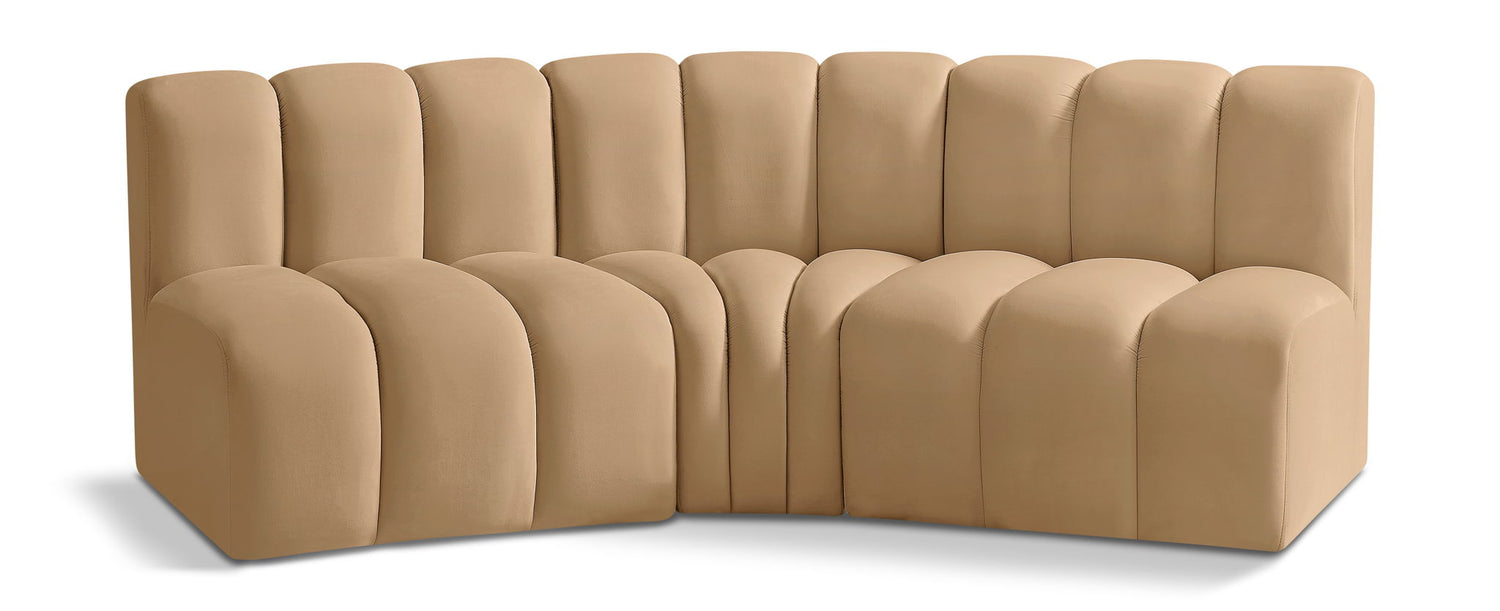 Arc - Velvet 3 Piece Modular Corner Sofa - Camel