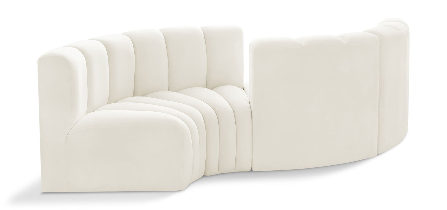 Arc - Velvet 4 Piece Curved Modular Sofa - Cream