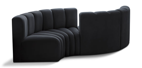 Arc - Velvet 4 Piece Curved Modular Sofa - Black