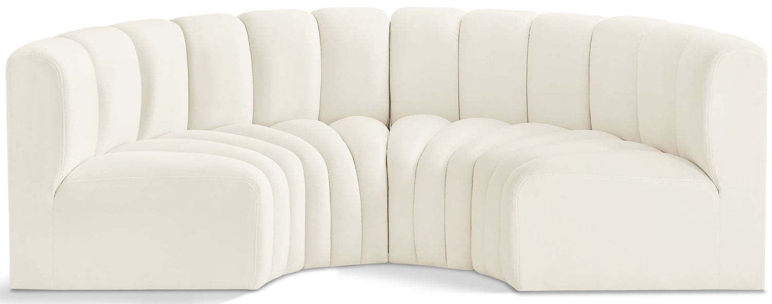 Arc - Velvet 4 Piece U-Shaped Modular Sofa - Cream
