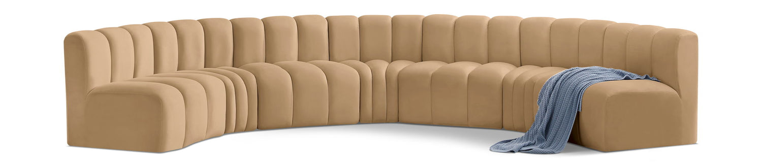 Arc - Velvet 7 Piece U-Shaped Modular Sofa - Camel