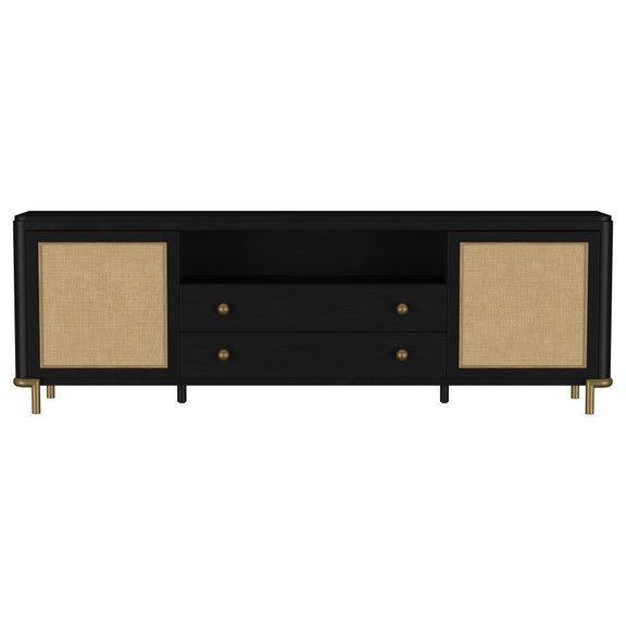 Arini - Rattan Cane 2-Door TV Stand Media Console - Black