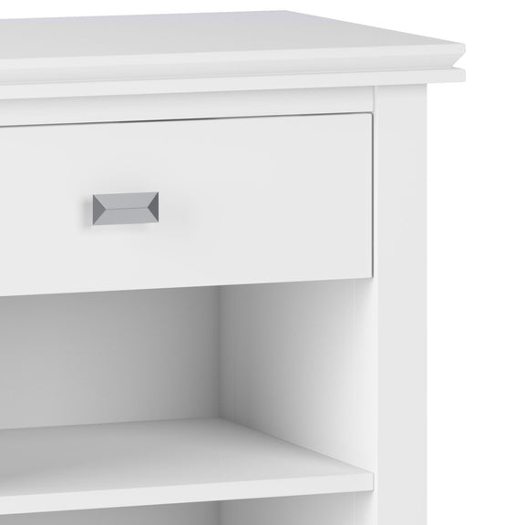 - Features one (1) spacious drawer with metal drawer glides and open bottom storage area with one shelf