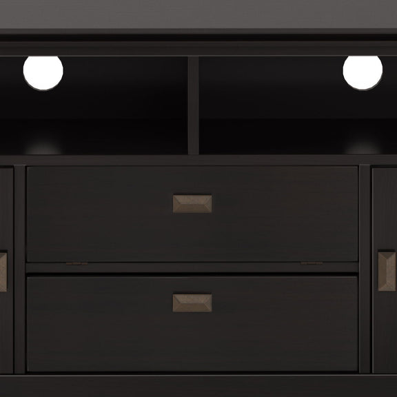 - Extra wide TV Stand is perfect for TVs up to 80 inches includes cord management cut-outs for easy installation of TV and media components