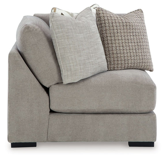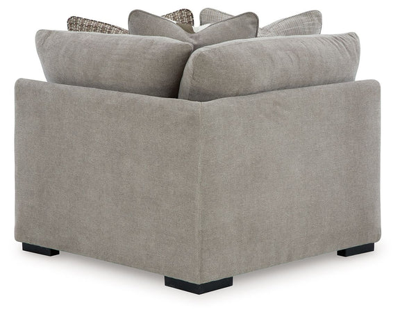 This wedge is made with polyester upholstery. Fully finished on all sides, it pairs with other items in the series to make a modular sectional.