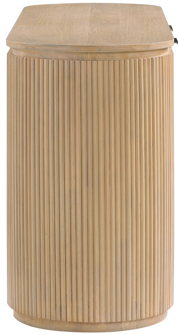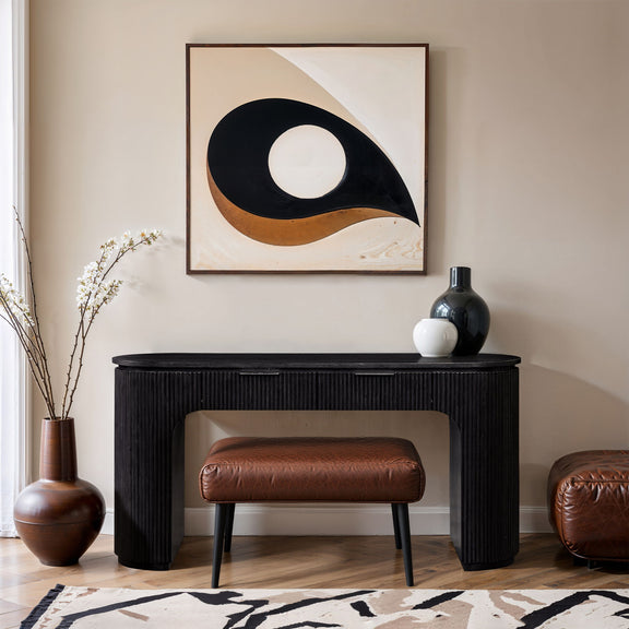 Texture takes the lead with the Astrid solid wood and oak veneer desk. Wrapped in sleek fluted wood and finished in a deep, moody tone, this contemporary design is both bold and refined. Whether styled in a bedroom or living space, it delivers effortless storage with standout style.