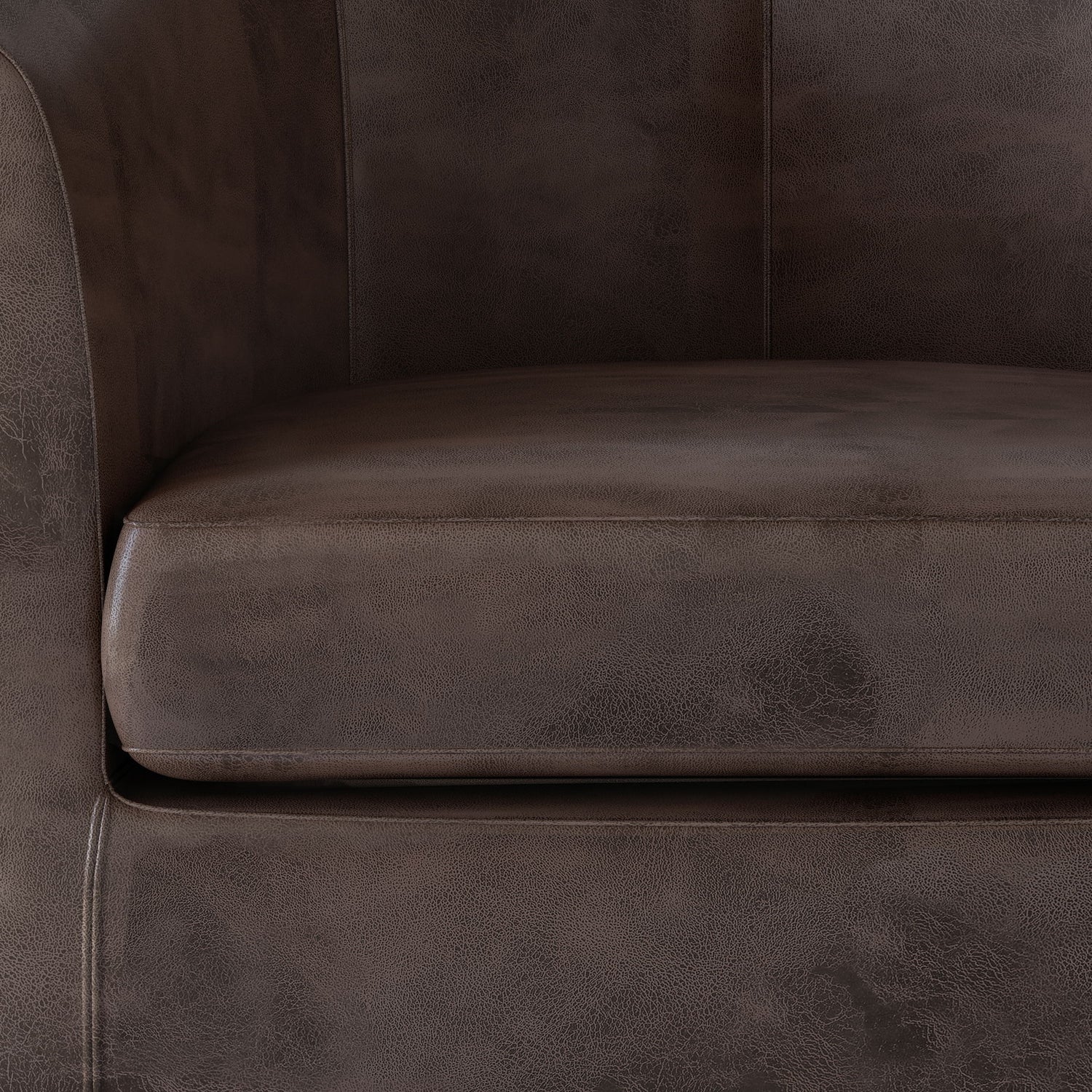 • Features curved back, sides with top stitching detail, dark brown solid wood legs and removable high density foam seat cushion