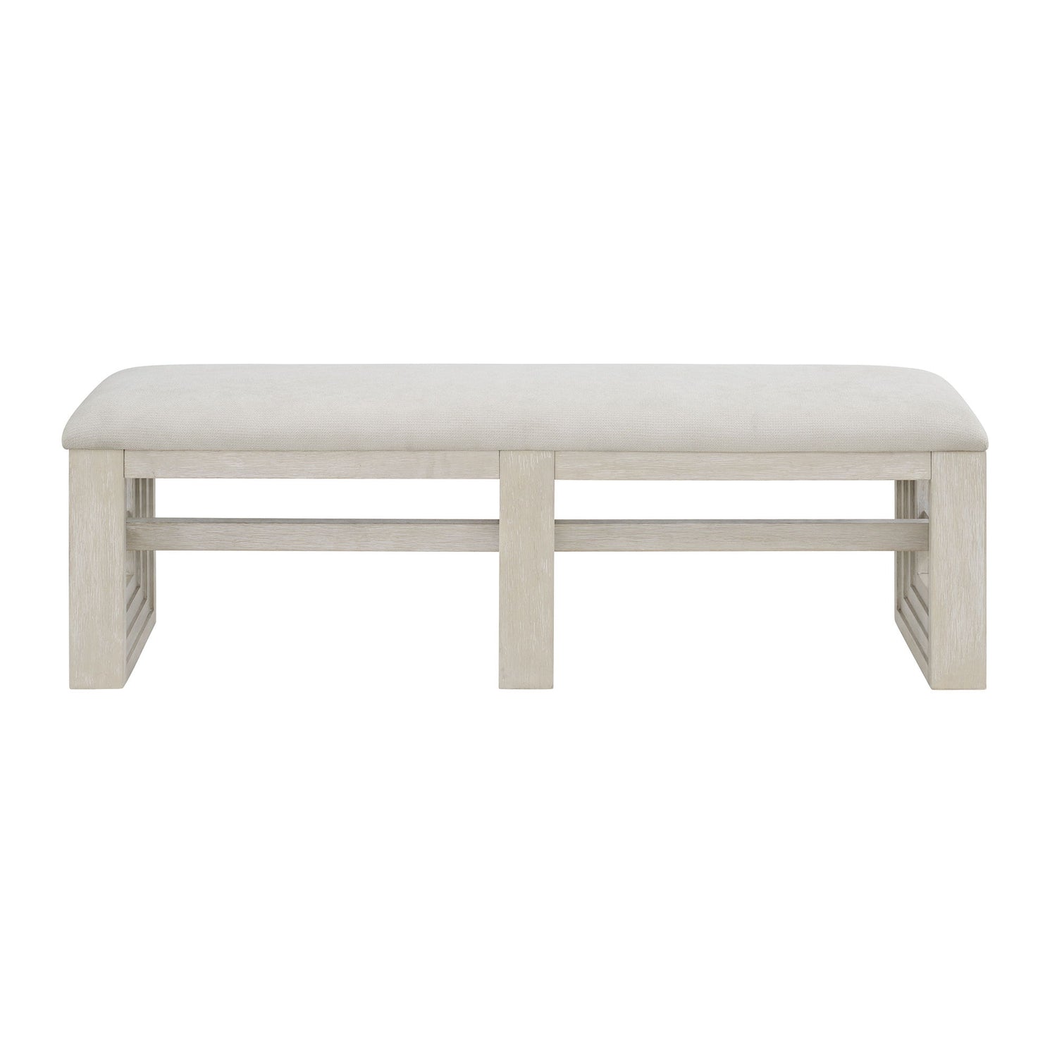 Introducing the Avalanche Bench, where modern design meets comfort and durability. Adorned with raised geometric patterns and finished in antique white, it exudes contemporary charm and sophistication. The triple U-shaped base not only provides stability but also adds a distinctive flair to your dining space. Enjoy plush foam seating upholstered in soft, light fabric, ensuring comfort during meals and gatherings. Whether used as additional seating or as a statement piece, this bench combines style with practicality effortlessly. Elevate your dining area with the Avalanche Bench, perfect for both everyday use and special occasions.