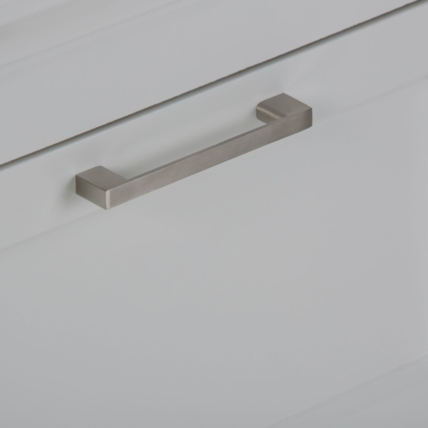 • Features one (1) pull open door. Contemporary Brushed Nickel handle