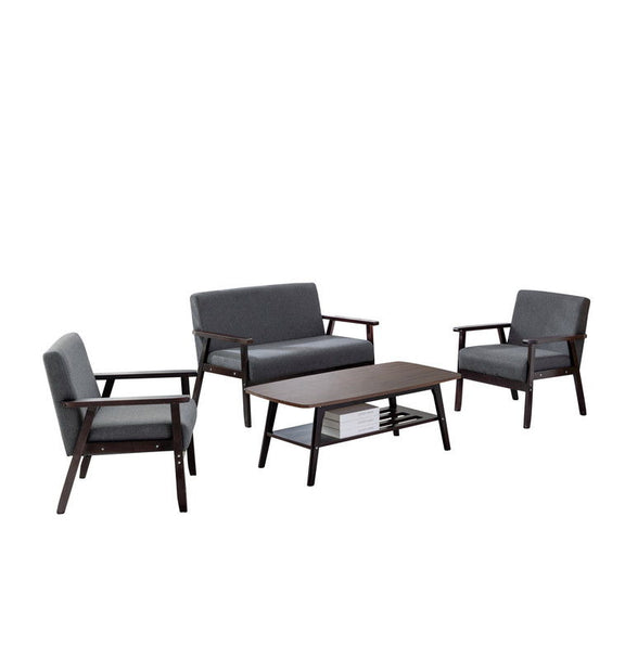 - The Bahamas 4-piece collection coffee table, loveseat, and 2 chair is the living room set your looking for. These mid-century modern pieces are supported by solid wood frame and arms. The simple design of the coffee table offers the trendiest look for your home, while being functional as well with the lower shelf for organization and storage. Perfect for small space living in any living room or bedroom and will allow you to impress and entertain your guests!