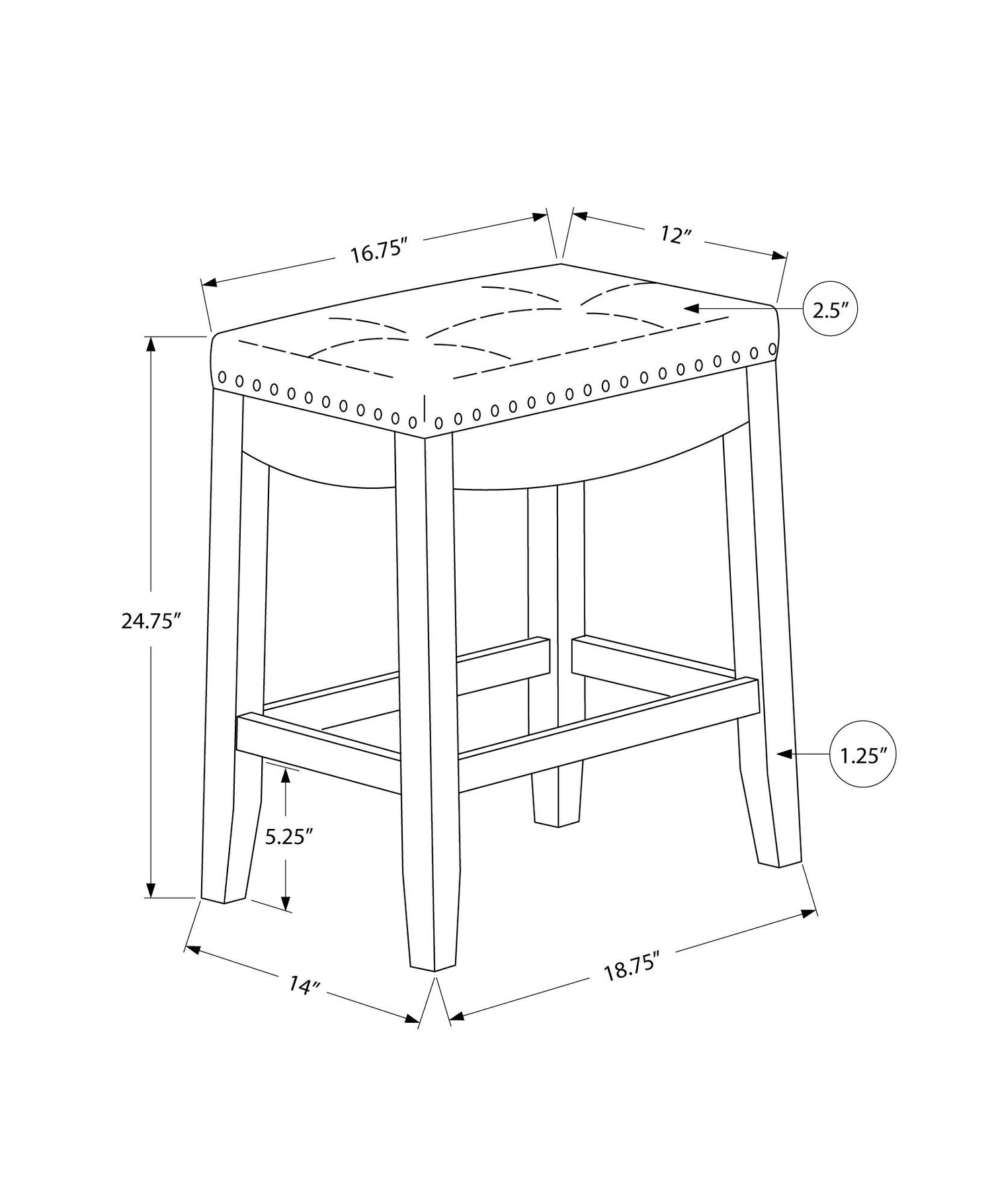 - Comfortable Seating: The set includes two counter-height, backless barstools with padded seats upholstered. The seats feature biscuit tufting and are enhanced with brass nailhead trim, adding a decorative touch.