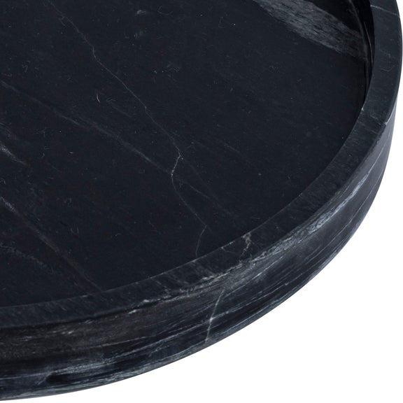 Capri marble brings depth and refinement to the Barletta round tray, a sculptural tabletop accent with soft curves and timeless charm. Each tray features its own distinct veining, making every piece naturally one-of-a-kind.